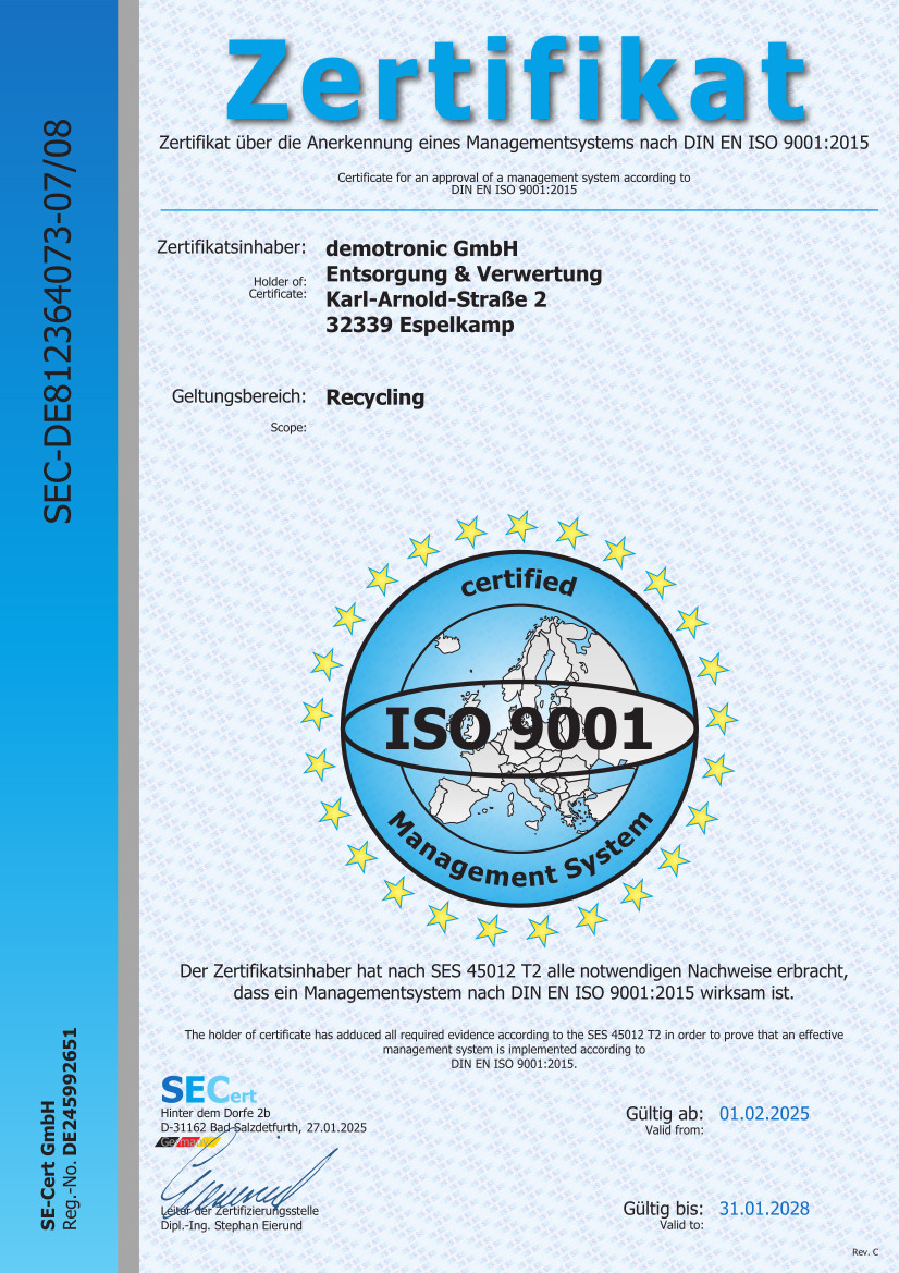 DEMOTRONIC GmbH, Almanya'nın Espelkamp kentinde faaliyet gösteren bir elektronik atık geri dönüşüm ve veri güvenliği şirketidir. 1997 yılında kurulmuş olan firma, özellikle sanayi ve kamu kurumlarından gelen elektronik cihazların çevreye duyarlı şekilde bertaraf edilmesi ve yeniden değerlendirilmesi üzerine uzmanlaşmıştır⁽¹⁾. Ne İş Yaparlar? - Elektronik Atıkların Geri Dönüşümü: Kullanılmış veya hurda elektronik cihazları toplar, ayrıştırır ve çevre dostu yöntemlerle geri dönüştürür. - Veri Güvenliği & İmha: Sabit disk, SSD, sunucu gibi veri taşıyıcılarının güvenli şekilde imhasını sağlar. Bu, özellikle kurumsal müşteriler için kritik bir hizmettir. - Yeniden Kullanım & Onarım: Uygun durumdaki cihazları onararak yeniden kullanılabilir hale getirir. Böylece hem ekonomik hem de çevresel fayda sağlar. - Lojistik & Toplama Hizmeti: Kendi araç filosuyla elektronik atıkları yerinden alır ve tesislerine taşır. 🌍 Neden Önemli? DEMOTRONIC, ISO sertifikalı süreçleriyle sürdürülebilirlik, doğal kaynakların korunması ve karbon ayak izinin azaltılması gibi alanlarda aktif rol oynar. Ayrıca Almanya’daki döngüsel ekonomi yasalarına (Kreislaufwirtschaftsgesetz) uygun şekilde çalışır
