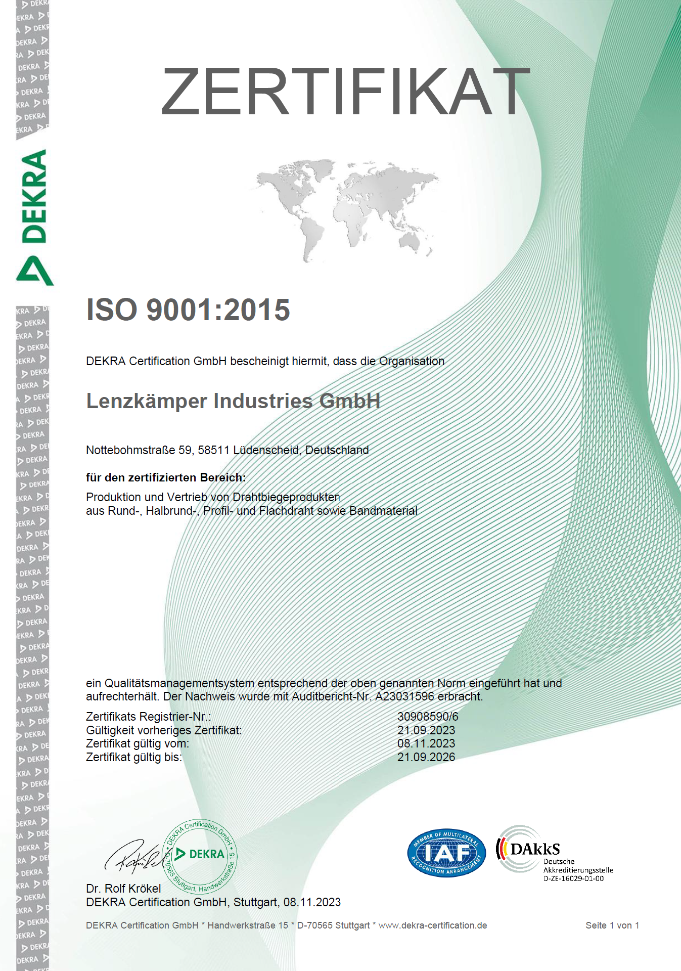 Lenzkämper Industries, faaliyetlerini Lüdenscheid, Almanya merkezli olarak yürüten bir şirkettir. Şirket, özellikle tel ve şerit büküm parçaları üretiminde uzmanlaşmıştır. Çeşitli sektörlerde kullanılan bu parçalar, genellikle çelik, yay çeliği, alüminyum ve pirinç malzemelerinden 0,5 ila 5 mm kalınlıkta üretilir. Firma, müşterilerine özel tasarım çözümleri sunarak üretimi müşteri çizimlerine ve prototiplere göre gerçekleştirir. Ürün yelpazesi arasında teknik yaylar, anahtarlık halkaları, tasarım amaçlı büküm parçalar ve sanayi için özel aksesuarlar yer alır. Tel büküm teknikleri, hem endüstriyel uygulamalar hem de promosyon ürünlerinde kullanılmaktadır. Örneğin, bir otomobil üreticisi için özel olarak tasarlanan telden yapılmış bir ataş, büyük ilgi görmüştür. Lenzkämper Industries’in güçlü yönleri, esnek üretim süreçleri, hızlı teslimat ve güçlü tedarik zinciri yönetimidir. Aynı zamanda kalite yönetimine verdiği önemle öne çıkar ve her aşamada kalite kontrol sağlar. Şirketin tel ve büküm parçaları, inşaattan tıbbi ekipmanlara kadar geniş bir kullanım alanına sahiptir.