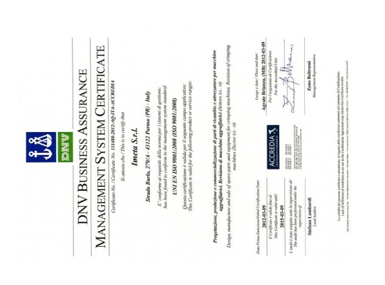 Imeta S.r.l., konserve endüstrisi için özel makine parçaları ve ekipmanlar üreten İtalya merkezli bir şirkettir. Faaliyet Alanları: 🔩 Konserve Kapatma Makineleri – Seaming chucks ve rolls üretimi. ⚙️ Yedek Parçalar ve Değişim Kitleri – Konserve kapatma makineleri için özel parçalar. 🏭 Makine Bakımı ve Revizyonu – Eski makinelerin yenilenmesi ve verimliliğin artırılması. Öne Çıkan Özellikler: - 1963’ten beri sektörde uzmanlık ve yüksek hassasiyetli üretim. - Gıda ve içecek endüstrisi için özel çözümler. - Küresel pazarda geniş müşteri ağı ve teknolojik yenilikler. Imeta, konserve üretiminde kalite ve dayanıklılığı artıran çözümler sunarak sektörde önemli bir rol oynamaktadır.