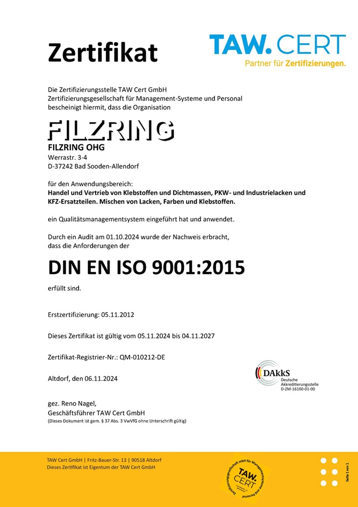 FILZRING OHG, die Firma, wurde 1988 in Deutschland gegründet und begann zunächst mit dem Verkauf von Ersatzteilen für skandinavische Fahrzeuge⁽¹⁾. Heute agiert sie als Liefer- und Vertriebspartner für mehr als 4.500 Industrielle⁽¹⁾. Ihr Produktportfolio umfasst: - Automobilersatzteile und -zubehör - Industrielacke (für Fahrzeuge, Yachten und Industrie) - Klebstoffe, Füllstoffe und Dichtungsmaterialien - Reinigungschemikalien und -vorbereitungsmittel - Anlagenausrüstung und technische Lösungen Darüber hinaus hat sie sich auf den Transport gefährlicher Güter spezialisiert und verfügt über umfassende Kenntnisse in der internationalen Exportierung dieser Produkte in Bezug auf Verpackung und Zollabwicklung⁽¹⁾. Die Firma arbeitet mit zahlreichen technischen Universitäten in Deutschland, den Max Planck und Fraunhofer-Instituten sowie dem Deutschen Zentrum für Luft- und Raumfahrt (DLR) zusammen.