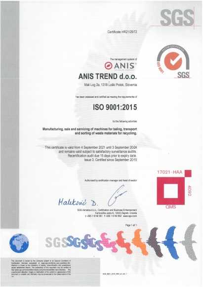 Anis Trend Recycling Systems Ltd, municipal solid wastes, waste paper, cardboard and other industrial wastes are a Slovenian manufacturer that produces automatic channel balyma presses in a wide range of rectangular bales.Anis manufacturers also produce auxiliary equipment for high quality bale, such as conveyor bands and smaller separation lines, pet pierces, fluffers.Advantages of Anis: Anis engineers have been designing and producing technologically innovative, reliable machines for 40 years.Anis machines can be used in different environments thanks to the existence of both small bale machines that are ideal for logistics centers and large bales of bale machines that are ideal for garbage sites.The power of waste bale machines may vary between an output of 2 to 60 tons/h and 40 to 200 tons of RAM.The main powerful aspects of Anis Bale machines: -The elasticity of the elasticity and multiple materials -makineler can bale of different types of materials.-Cutting and compression system cutting and compression system provides a high -volume output.This procedure allows higher density per m³ compared to press poultry machines.Components of the Channel Bale Machine: - Press is equipped with high quality hydraulic components of well -known manufacturers (Parker, Bucher, Poclain), PLC controller SIEMENS Simatic.- Hardox -resistant internal coating abrasion -resistant plate coating - Hardox - allows the machine's service life.
