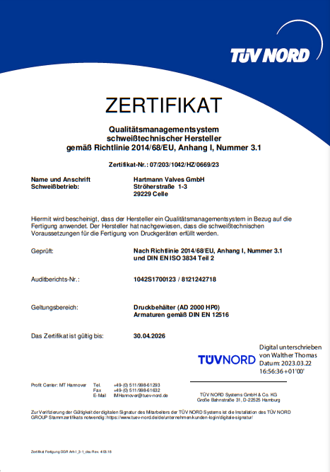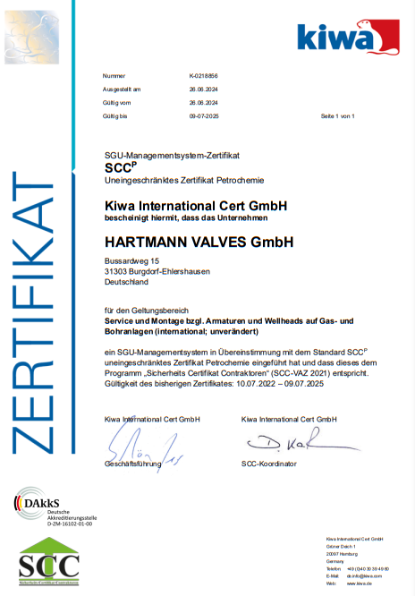 Kuresel vana, pig vanalari ve kuyu baslarinin onde gelen ureticilerinden biri olan Hartmann Valves sirketi, petrol, dogal gaz, petrokimya, enerji santrali, jeotermal ve yenilenebilir enerji sektorlerinde dunya capinda faaliyet gostermektedir. Yapim, montaj ve testler sadece Alman tesislerinde gerceklestirilmektedir. -200 ile +550degC sicaklik araligi, 700 bara kadar basinc ve yilda 200.000 anahtarlama icin uygun ve petrol, dogalgaz, asit gazi, sentez gazi, oksijen, hidrojen, helyum, buhar, termal su, komur tozu, camur, curuf ve kul, polimerler ve selulozun yani sira asindirici ve yag cozuculer gibi agresif ortamlara karsi direncli olan Hartmann High Performance armaturleri musterilerin gereksinimlerine gore munferit olarak uretilmektedir. Tamamen metalik sizdirmazlik sistemi sayesinde ozellikle dayanikli, uzun omurlu olup az bakim gerektirirler. API 6A uyumlu kuyu basi ve Noel agaci armaturlerimiz metal sizdirmazlik bilyeli vanalarla donatilmis olup, onlarca yildir basariyla kullanilmaktadir.
