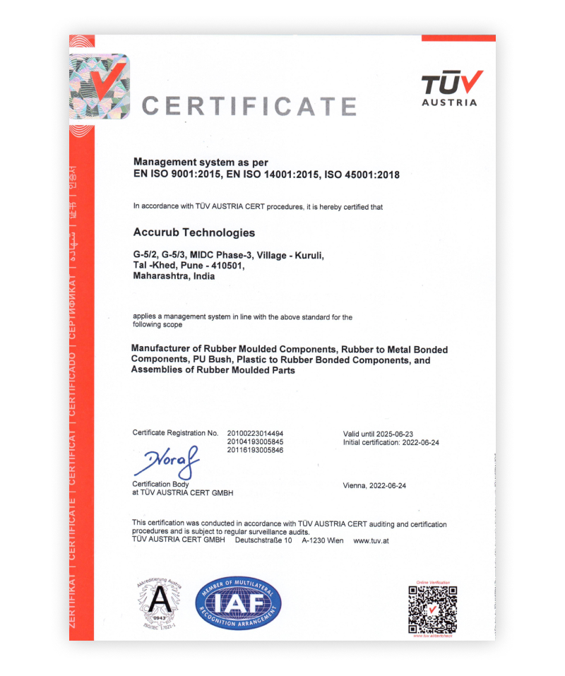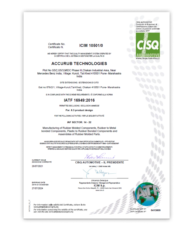 AccuraB is the polymer division of Accurate Group, A Leading Automotive Manufacturer in India.The Vision Behind Starting a New Company Was to Offer Customotives Rubber Components, Metal-to-Rubber Bonded Anti-Vibration Comons.The Focus Was on Components and Assemblies for Light and Heavy Commercial Vehicles in Global Markets.Visionary Mr.HS Madaan Laid The Foundation of Accurate Group in 1995 in Pune, India.His Global Vision and Strong Character Have Taken the Group to New Heights, After Several Periods of Difficulty and Nonetheless.Backed by Over Two Decades of Experience, Accurate Today, Developed into A Premium Steel Pipe Manufacturer with a Production Capacity of Approx.18,000 Metric Tons of Precision Tubes Per Year.Innovation, Hard Work and Commitment are in the DNA of the Company.It Wishes to Touch Each Industrial and Mainly Automotive Sector.In Order to Reach Global Platforms, We Are Constantly Striking to Improte Our Production Process, Non-Stop Research and Development in Pipe, Rubber Polymers, and Technical Expertise.Accurub Started with A Vision to Develop Value Added and Value Engineering for Our Customers Globally for the Integrated Production of All Rubber-Metal Bonded Products, ThereeBy Machine Omponents.