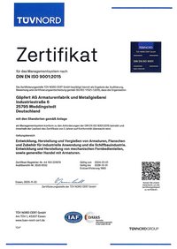 GÖPFERT AG, şirketi 2003, yılında kurulan ve Endüstriyel su tesisatı ve vanalar sektöründe faaliyet gösteren bir İmalatçı/ Üretici şirketidir. bilyeli musluklar, Kapatma vanaları, çekvalfler, Pnömatik ve hidrolik motorlar sektörlerinde de iş yürütmektedir. Şirket, Weddingstedt, Almanya de bulunmaktadır.