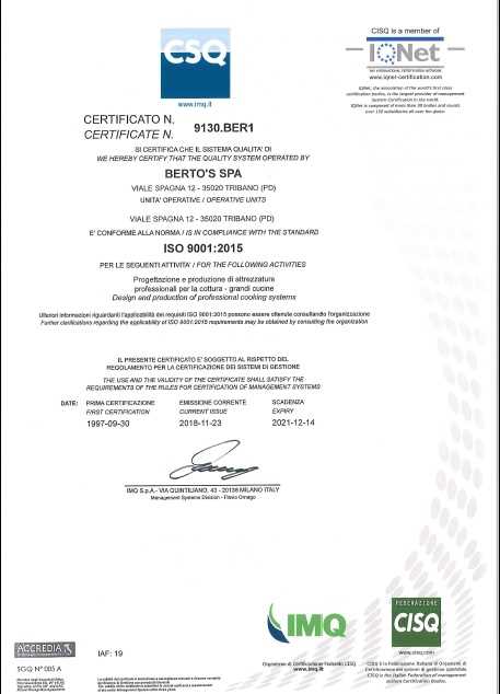 Berto ' s: Durante más de 45 años de experiencia en sistemas de cocina profesional, Berto es una empresa establecida para habitaciones pequeñas y medianas en la industria mundial de cocina profesional.Fundada en 1973, la compañía ha mantenido sus raíces en el mercado interno, mientras que una profesión importante para la exportación se caracterizó por el 80% de la producción.Hasta la fecha, más de 22 millones de euros, una oficina de aproximadamente 18,000 metros cuadrados, 2 salas de exposición, 120 empleados, con una producción anual promedio de 25,000 unidades, Berto es uno de los actores mundiales más grandes de la industria.