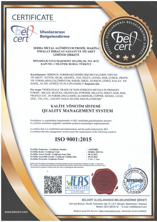 Serba Metal Alüminyum Profil İth. İhr. Ltd. Şti., Bursa Nilüfer Organize Sanayi Bölgesi’nde faaliyet gösteren, alüminyum, galvaniz, paslanmaz ve boyalı sac ürünleri konusunda uzmanlaşmış köklü bir Türk firmasıdır. Sanayi ve inşaat sektörlerine yönelik geniş ürün yelpazesiyle dikkat çeken firma; alüminyum profil, levha, rulo, çeta ve trapez gibi malzemelerin yanı sıra, galvaniz ve paslanmaz sac çözümleri de sunmaktadır. Üretim süreçlerinde lazer kesim, apkant kesim-büküm, punch kesim, rulo dilme, ebatlama ve sac yüzeyi folyo kaplama gibi teknik hizmetler sağlayan Serba Metal, ISO 9001:2008 ve TSE belgeleriyle kalite standartlarını belgelendirmiştir. Hem iç pazarda hem de ihracat alanında aktif olan firma, müşteri odaklı yaklaşımı ve güçlü teknik altyapısıyla sektörde güvenilir bir çözüm ortağı olarak öne çıkmaktadır.